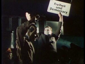 Denn anlässlich der Kanzlerkandidatur von Franz Josef Strauß bricht ein Zug aus Militärlastwagen, Luxuslimousinen, Motorrädern und vielen Menschen in Sonthofen auf und zieht über 3.300 Kilometer durch die ganze BRD nach Bonn. Er stellt dar, wie aus den “Freiheit und Democracy”-Fordernden von 1947 die Straußsche “Sammlungsbewegung zur Rettung des Vaterlands” geworden war. Der Film dokumentiert diese Aktion. Heute ist wieder viel von Verteidigung der Freiheit die Rede.….